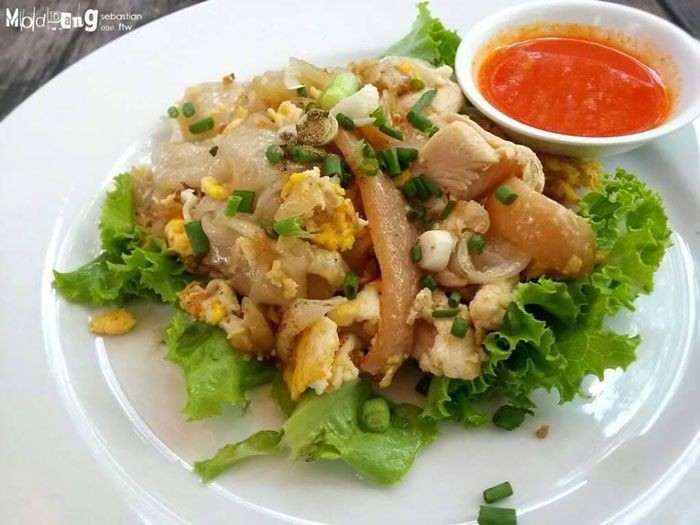 1. ก่อนอื่นเราต้องตั้งกระทะใส่น้ำมันให้ร้อนก่อน หลังจากนั้นให้ใส่เนื้อไก่ ปลาหมึกกรอบ และตังฉ่ายลงไปผัดด้วยไฟปานกลางให้หอม จากนั้นใส่เส้นก๋วยเตี๋ยวลงผัดเร็วๆ พอเข้ากัน