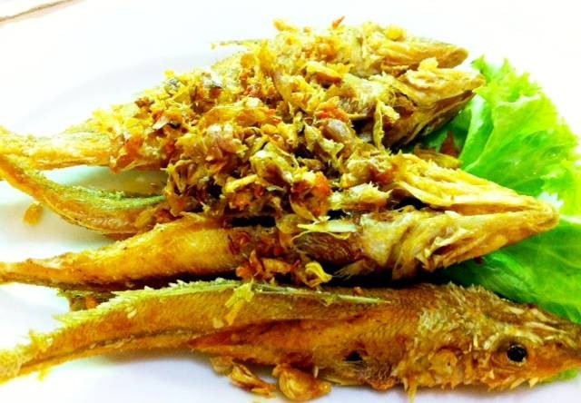 2. นำส่วนผสมที่โขลกคลุกปลาให้ทั่ว พักไว้ประมาณ 10-20 นาที จึงนำมาทอดในน้ำมันที่ร้อนจัด ไฟปานกลาง พอสุกเหลืองตักขึ้นจัดใส่ภาชนะ เสิร์ฟร้อนๆ