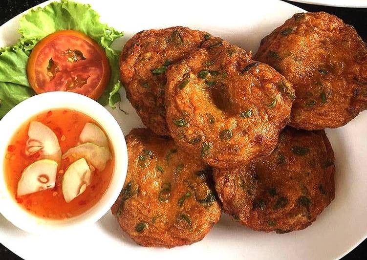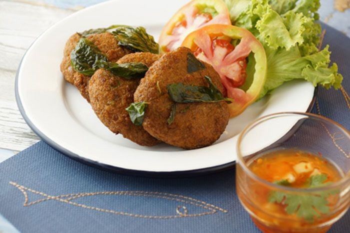 3. ตั้งน้ำมันใช้ไฟปานกลาง พอน้ำมันร้อนจัดใส่ส่วนผสมลงทอดจนสุก ตักขึ้นพักให้สะเด็ดน้ำมัน จัดเสิร์ฟพร้อมผักสดต่างๆ