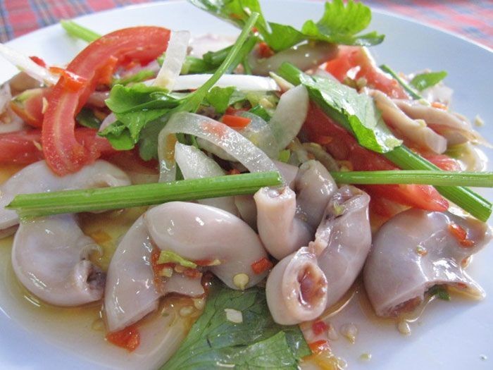 2 ที่ต้องนำไส้ที่ลวกแล้วผ่านน้ำเย็นหลังจากลวก เพื่อล้างความร้อนข้างนอกให้หมดไป ไม่อย่างนั้นเวลานำไปยำความร้อนที่มีอยู่จะทำให้ผักคล้ำและดำ แต่ถึงแม้ว่าจะผ่านน้ำเย็นแล้ว แต่ภายในไส้ยังคงมีความร้อยอยู่ เวลาเคี้ยวก็ยังรู้สึกได้
