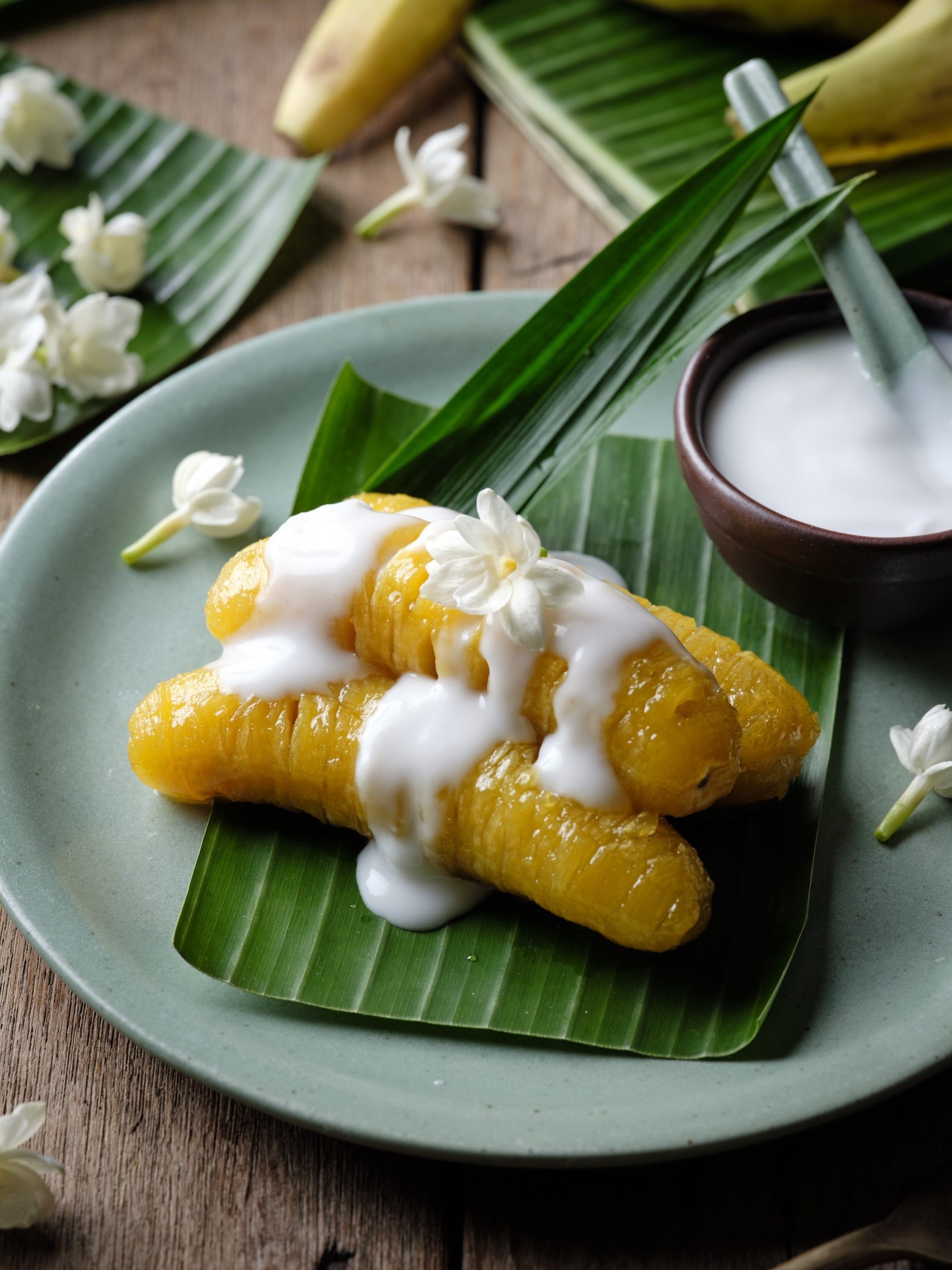 - กล้วยไข่ห่าม 8-10 ผล (ปอกเปลือกและบั้งตามขวาง)