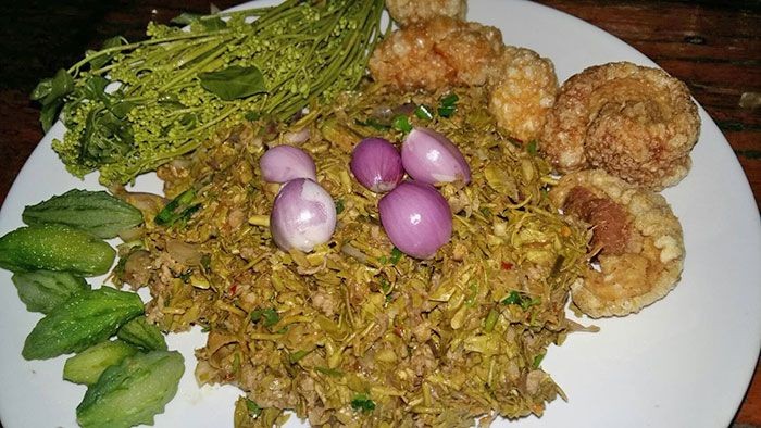 - น้ำปลาร้าต้มสุก 1/2 ถ้วย