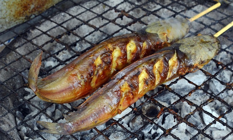 เสร็จแล้วนำตะแกรงที่จะย่างปลามาตั้งไฟให้ร้อนเสียก่อน แล้วจึงค่อยวางปลาลงบนตะแกรง พอตัวปลาเริ่มแห้งให้ทาน้ำมันลงบนตัวปลาให้ทั่วเพื่อป้องกันไม่ให้ปลาติดตะแกรงขณะย่างค่ะ