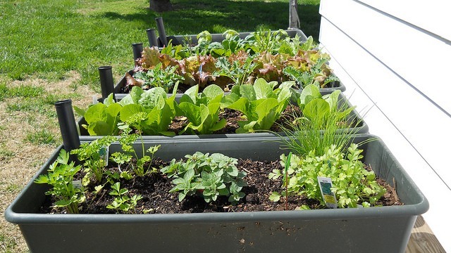 นำภาชนะที่ไม่ใช้แล้ว ที่มีรอยรั่ว หรือรูรั่วพอที่จะระบายน้ำได้ ใส่ดินเช่นดินถุงที่หาซื้อได้ทั่วไปมาผสมกับกากมะพร้าว ใบไม้แห้ง ถ้าจะให้ดีควรรดน้ำผสมกรดฮิวมิกลงไปก่อนปลูก จากนั้นนำเมล็ดผักที่แช่น้ำทิ้งไว้หนึ่งคืนหว่านลงไป ทั้งนี้อาจดูวิธีปลูกที่ข้างซองเมล็ด เพราะผักแต่ละชนิดมีวิธีการปลูกที่แตกต่างกัน ที่สำคัญต้องคอยใส่ปุ๋ยรดน้ำ และดูแลให้ได้รับแดดอย่างเพียงพอ