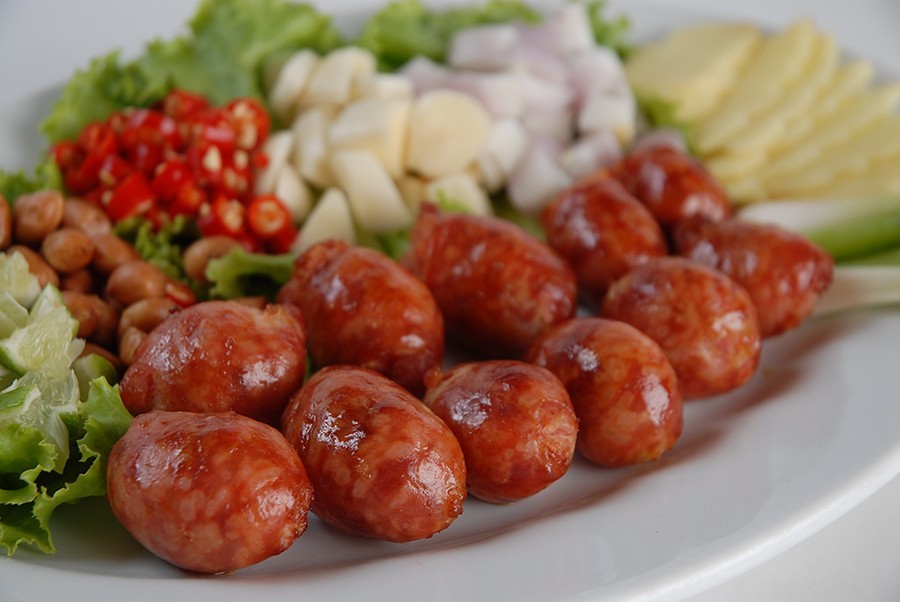- นำไปยัดใส่ไส้หมู มัดเป็นท่อนเป็นระยะๆ ตามต้องการ