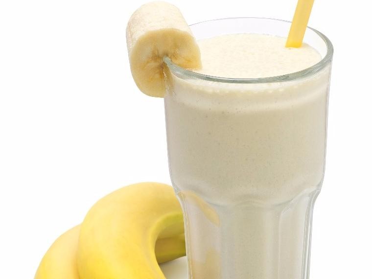 - ใส่กล้วยหอม นมสด น้ำเชื่อม เกลือ น้ำแข็งและน้ำลงโถปั่น ปั่นให้เข้ากันดี