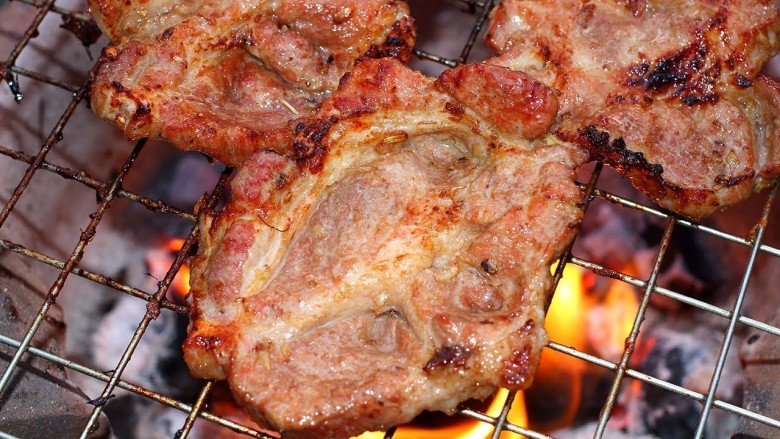 1.นำเนื้อหมูมาย่างพอสุก หั่นเป็นชิ้น พักไว้