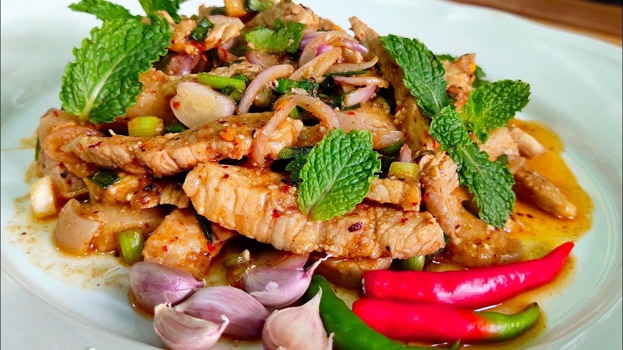 - ผสมหมูย่าง เครื่องปรุงรส ข้าวคั่ว พริกป่น เคล้าให้เข้ากัน จึงใส่ผักชี ต้นหอม ผักชีฝรั่ง ใบสะระแหน่ หอมแดง เคล้าให้เข้ากัน ตักใส่จานให้สวยงาม รับประทานกับผักสดต่างๆ เช่นใบโหระพา กะหล่ำปลี ถั่วฝักยาว ฯลฯ