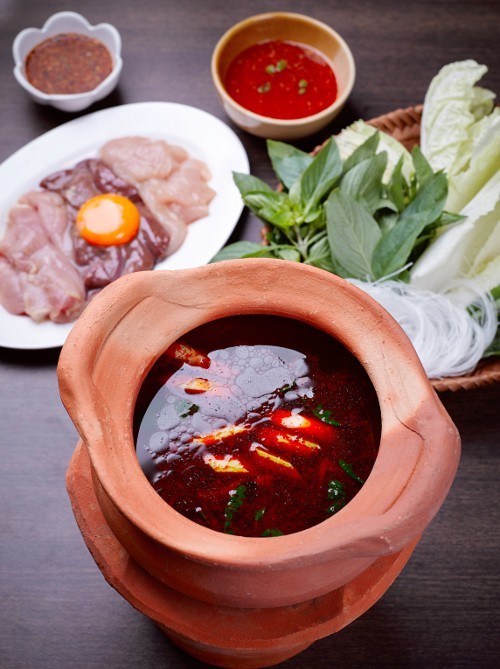 ผักเสริม ผักกาดขาว ผักบุ้ง และผักอื่น ๆ วุ้นเส้น พวกนี้เป็นของแถมจะมีหรือไม่มีก็ได้ ตับ และเนื้อหมูได้สันใน เนื้อ หรือเนื้อวัว
