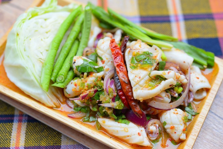 ปลาหมึกต้องสด การเลือกดูที่ตาปลาหมึกต้องใสไม่ขุ่น เห็นตาดำด้านในได้ชัดเจนหัวและลำตัวยึดติดกัน เนื้อปลาหมึกแน่น ไม่เละ ไม่มีกลิ่นเหม็น และการบั้งปลาหมึกช่วยทำให้เครื่องปรุงและน้ำลาบไปเกาะตามร่องหมึกที่บั้ง ช่วยเพิ่มรสชาติให้เข้มข้นอร่อยยิ่งขึ้น
