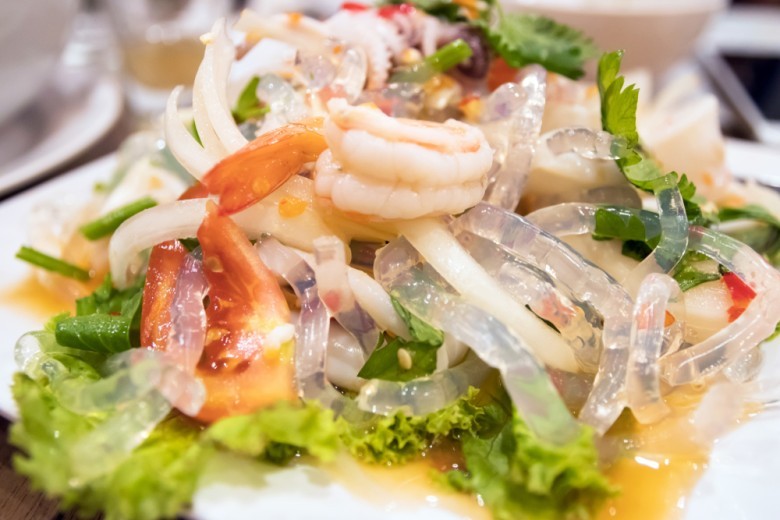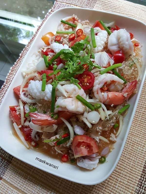 2.ลวกกุ้งปลาหมึกให้สุก (อย่าให้สุกเกิน) พักไว้ให้สะเด็ดน้ำ