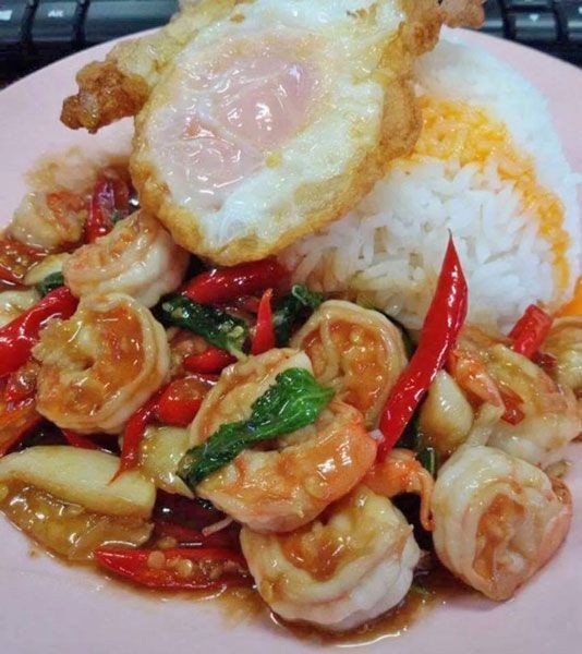 7. รับประทานกับข้าวสวยร้อนๆ รสชาติจัดจ้านกุ้งหวานนุ่ม หอมใบกระเพรา เพิ่มความอร่อยด้วยน้ำพริกน้ำปลา และไข่ดาวกรอบๆ อร่อยเข้ากันคะ