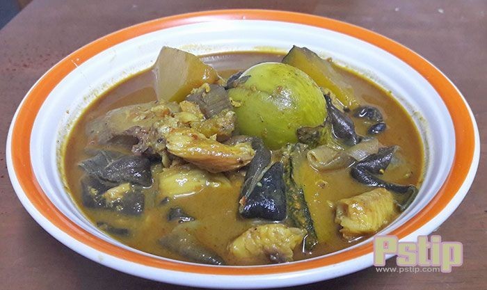 2.ใส่น้ำเปล่าลงในหม้อตั้งไฟ รอจนน้ำเดือด ใส่กะปิปลาลงในกระชอนพร้อมด้วยไตปลาแล้วนำไปละลายกับน้ำเดือดในหม้อ เสร็จแล้วจึงใส่เครื่องแกงลงไปต้มสักครู่