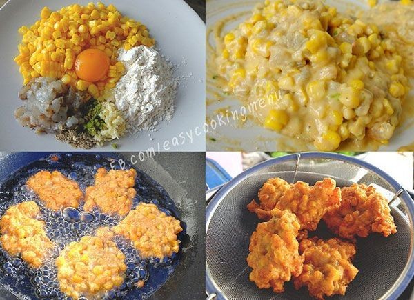 วิธีทำข้าวโพดทอด นำส่วนผสมทั้งหมดนวดคลุกเคล้าให้เข้ากัน นำไปทอดในน้ำมันร้อน ใช้ไฟปานกลางจนสุกเหลืองน่ารับประทาน