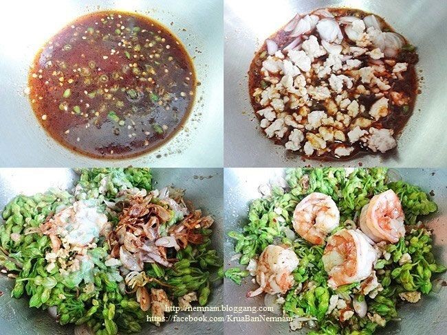ทำน้ำยำ โดยผสมน้ำปลา น้ำมะนาว น้ำตาลปี๊บ พริกขี้หนู และน้ำพริกเผา คนผสมให้เข้ากัน ชิมรสตามชอบ ใส่หมูสับ กุ้ง หอมแดง ดอกขจร กระเทียมเจียว หอมเจียว และหัวกะทิ คนผสมให้เข้ากัน
