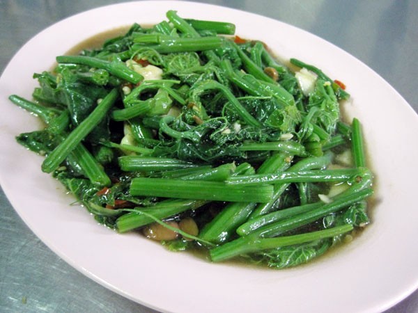 2. ตั้งกระทะใส่น้ำมัน รอจนร้อนจัด ใส่ยอดฟักแม้วที่ผสมเครื่องปรุงแล้วลงไปผัดประมาณ 2-3 นาที