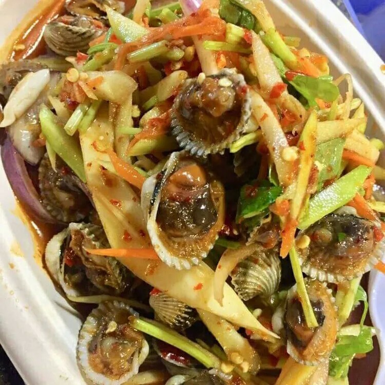 - เนื้อหอยแครงลวก (พอสุก) 100 กรัม