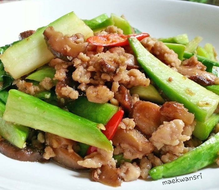 - เห็ดหอมแช่น้ำให้นิ่ม หั่นเป็นชิ้น
