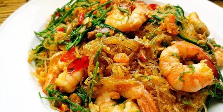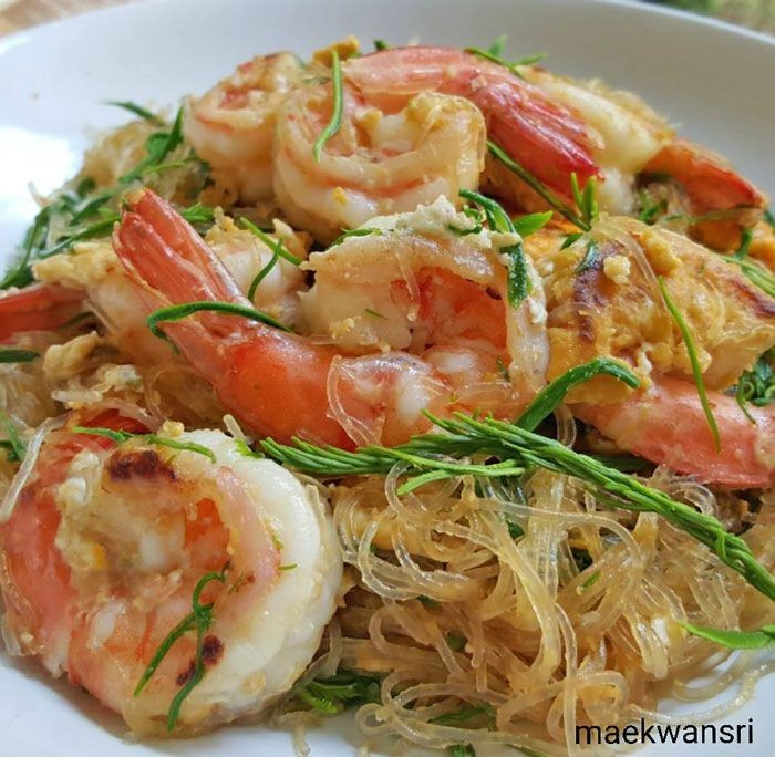 วิธีทำ ผัดวุ้นเส้นชะอมกุ้งสด