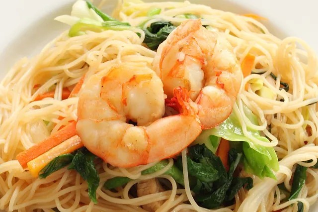 1.ลวกเส้นหมี่ในน้ำเดือดประมาณ4นาที แช่ในน้ำเย็นจัด พักไว้ให้สะเด็ดน้ำ