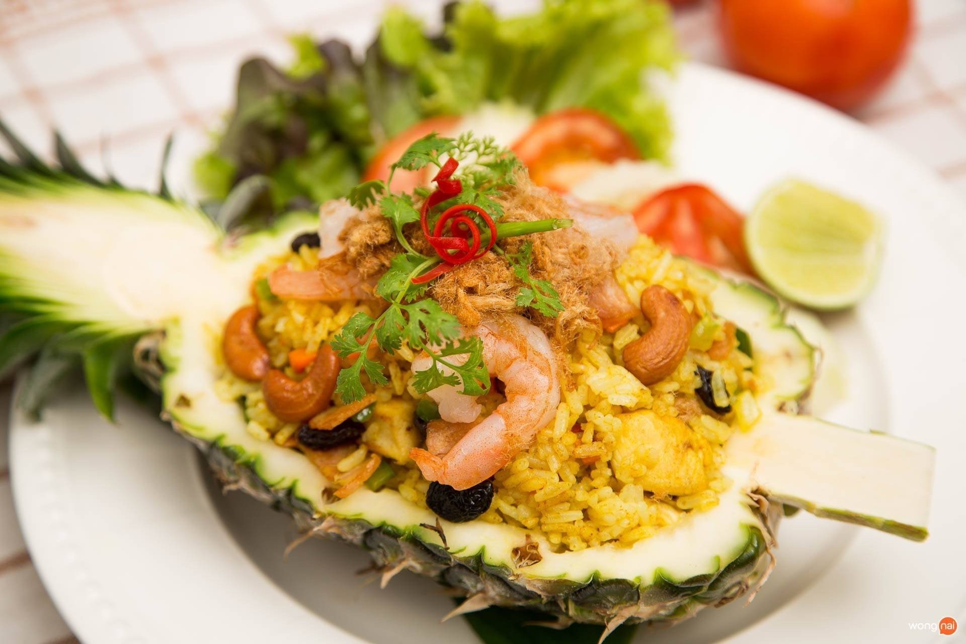 6. ตักข้าวผัดสับปะรดใส่ในสับปะรดที่เตรียมไว้ แต่งหน้าด้วยผักชี แล้วเสิร์ฟได้เลย