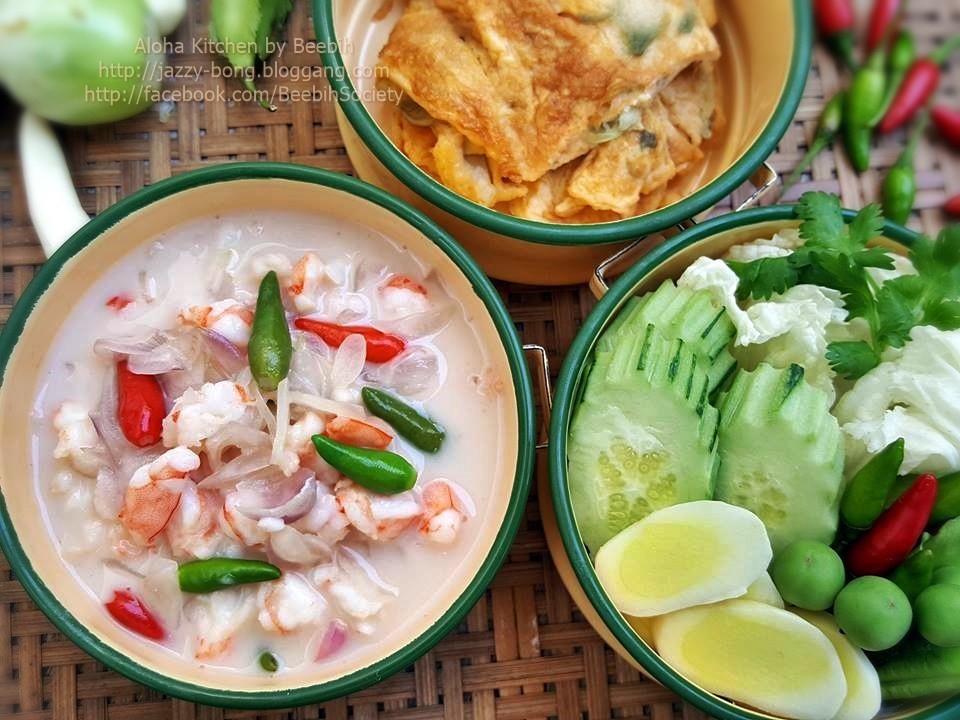 - ผักสดต่างๆ เช่น แตงกวา ผักกาดขาว มะเขือเปราะ ถั่วพู เป็นต้น