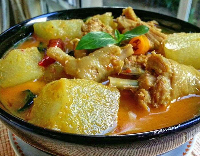 3.เททั้งหมดลงหม้อ ปรุงรสด้วย เกลือ/น้ำตาลปี๊บ/ แล้วเคี่ยวจนไก่เริ่มจะนุ่ม ใส่ฟักลงไปต้มจนนุ่ม ตามด้วย พริกชี้ฟ้า และใบโหระพา ตักเสริฟพร้อม ปลานิลแดดเดียว และน้ำพริกกะปิ ใช่เลยจ้าาาา