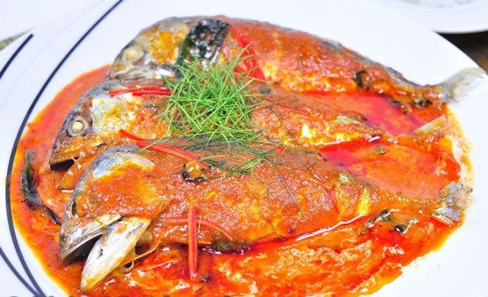 - ใส่กะทิ 1 ถ้วยในกระทะที่ตั้งไฟเคี่ยวให้แตกมัน แล้วใส่เครื่องแกงผัดให้หอม คอยเติมกะทิที่เหลือและคนไปพอเดือดดี ใส่ปลาลงไปทิ้งไว้ประมาณ 15 นาที