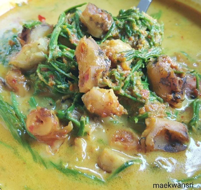 3.เติมหางกะทิลงไปเล็กน้อยให้พอน้ำขลุกขลิก ปล่อยให้เดือด