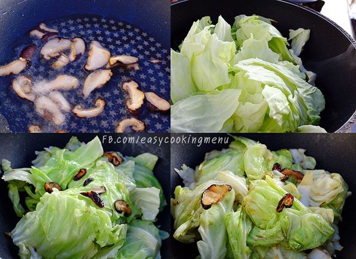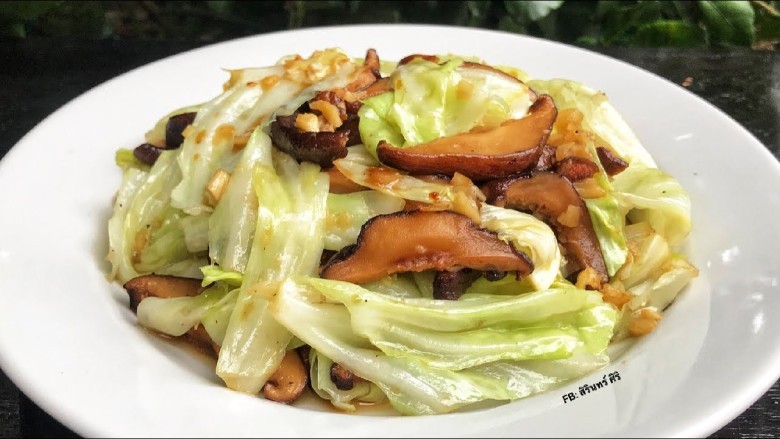 วิธีทำ กะหล่ำปลีทอดซีอิ๊วเห็ดหอมเจ