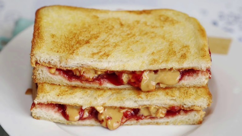 แซนด์วิชเนยถั่วผสมแยม เมนูนี้มีโปรตีนแคลอรีต่ำที่จะมาซ่อมแซมกล้ามเนื้อส่วนที่สึกหรอทำให้เราสามารถออกกำลังต่อไปได้เรื่อยๆ และผลการวิจัยยังบอกด้วยว่าการกินโปรตีนแคลอรีต่ำบวกกับออกกำลังกายเป็นประจำ จะลดไขมันบริเวณเอวได้ด้วย เริ่ดมั้ยล่ะ