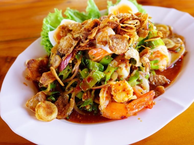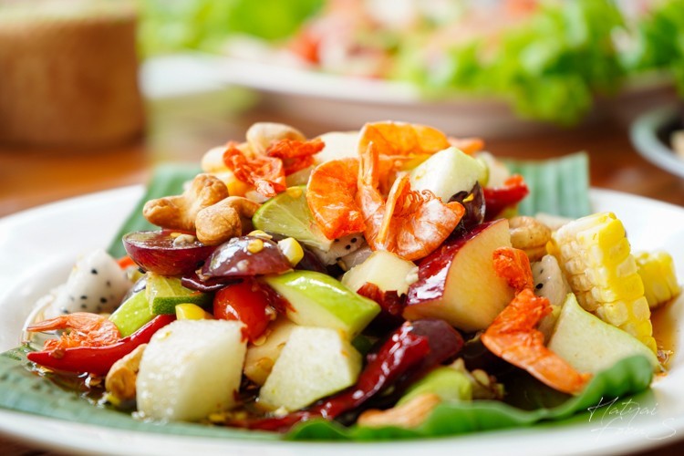 6. ตำผลไม้รวม สำหรับเมนูตำผลไม้รวม อาจจะไปสะกิดต่อมลิ้มรสชาติของนักชิมส้มตำทั้งหลาย ไม่ว่าจะตำไทย ตำมั่ว ตำซั่ว ปูปลาร้า (แหม..น้ำลายสอเลยเชียวคร่า) แต่อาจจะด้วยความจำเจของมะละกอทำให้ต้องปรับเปลี่ยนเสริมเติมแต่งจับผลไม้ชนิดนั้นชนิดนี้มามิกซ์รวมกันในครก ทำให้เมนูนี้กลายเป็นอีกเมนูหนึ่งที่ดีต่อสุขภาพ และรสชาติก็โดนใจถูกปากคนรักส้มตำด้วยจ้า