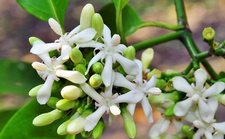 ดอกคัดเค้า ออกดอกเป็นช่อกระจุกตามซอกใบใกล้ปลายกิ่ง ดอกเป็นช่อใหญ่ แต่ละช่อดอกจะมีขนาดตั้งแต่ 4-10 เซนติเมตร ในแต่ละช่อจะมีดอกย่อยประมาณ 10-25 ดอก ดอกย่อยมีขนาดเล็กสีขาวและมีกลิ่นหอม ดอกมีขนาดเส้นผ่านศูนย์กลางประมาณ 1.5-2 เซนติเมตร ลักษณะคล้ายดอกเข็ม มีกลีบดอก 5 กลีบ เมื่อดอกบานเต็มที่กลีบดอกจะบิด ที่โคนกลีบดอกเชื่อมติดกันเป็นหลอดสั้น แต่ละดอกจะมีเกสรเพศผู้ 5 ก้านยื่นยาวพ้นกลีบดอก ส่วนเกสรเพศเมียเป็นรูปกระสวยสีขาวหรือเป็นรูปแถบเส้นอยู่ระหว่างกลีบดอก 6 แถบ กลีบเลี้ยงดอกเป็นสีขาวอมสีเขียว โคนเชื่อมติดกันเป็นหลอด ปลายแยกเป็นแฉกแหลม ดอกจะบานพร้อมกันทั้งช่อ เมื่อดอกที่เริ่มบานจะเป็นสีขาวนวลแล้วจะเปลี่ยนเป็นสีเหลืองนวลในวันต่อมา ดอกจะส่งกลิ่นหอมแรงมากในช่วงเย็นถึงช่วงกลางคืน โดยจะออกดอกในช่วงปลายฤดูฝนจนถึงช่วงฤดูหนาว และบางข้อมูลก็ระบุว่าจะออกดอกในช่วงฤดูหนาว (เดือนธันวาคมถึงเดือนมกราคม) บ้างก็ว่าจะออกดอกในช่วงฤดูร้อน (เดือนเมษายนถึงเดือนพฤษภาคม)