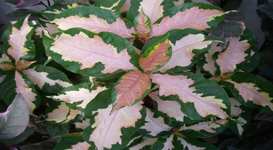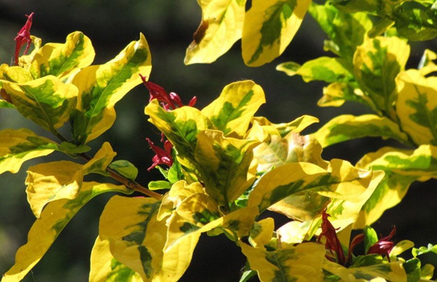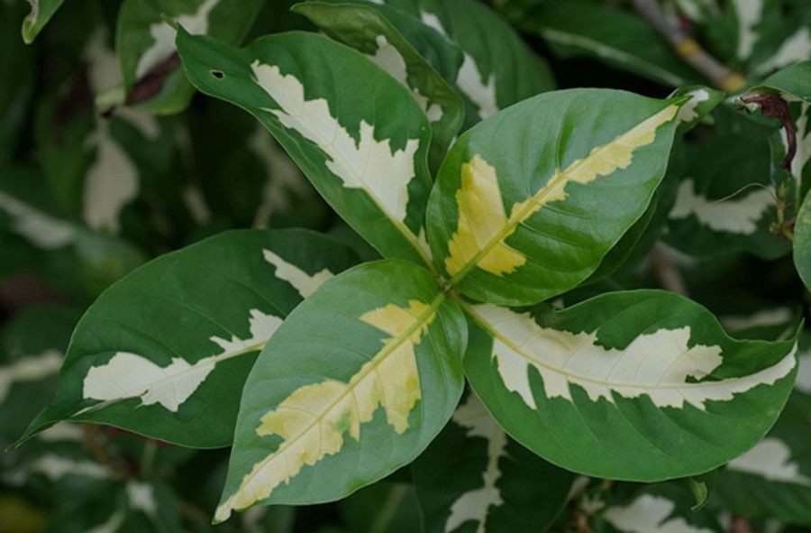ใบทอง แผ่นใบเป็นสีเขียวหรือสีเหลืองอ่อน ๆ มีสีเหลืองเข้มแทรกตามขอบใบ