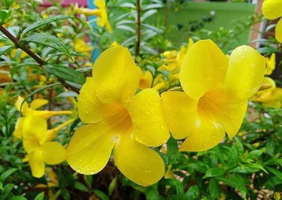 บานบุรี ชื่อสามัญ Allamanda, Common allamanda, Golden trumpet, Golden trumpet vine, Yellow bell