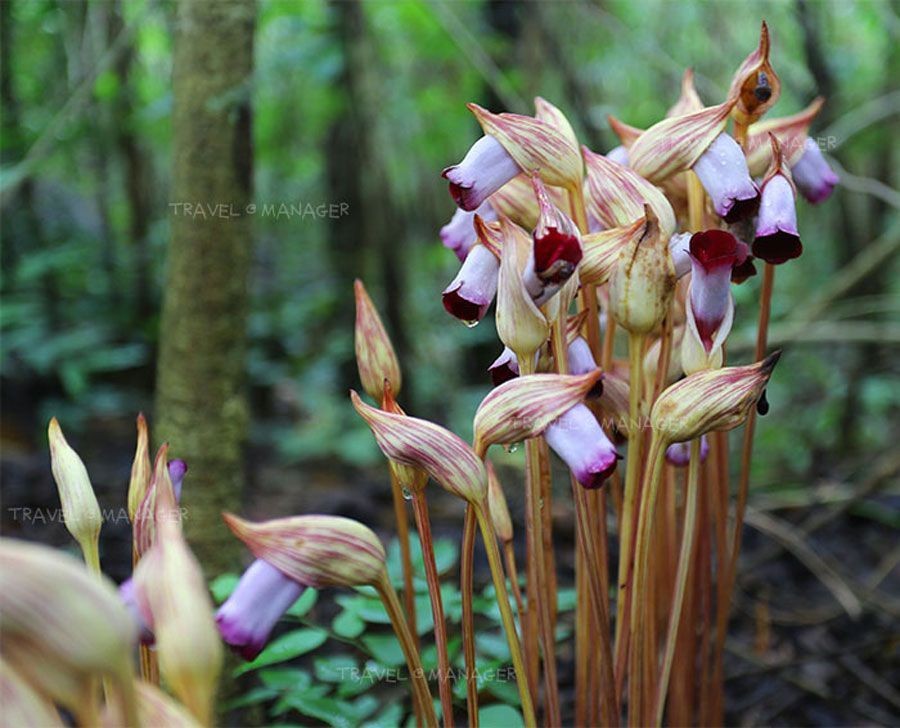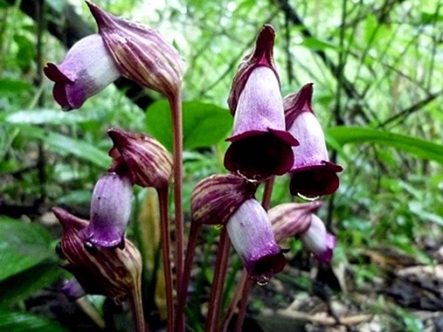 ดอกดินแดง ชื่อวิทยาศาสตร์ Aeginetia indica L. จัดอยู่ในวงศ์ดอกดิน (OROBANCHACEAE)