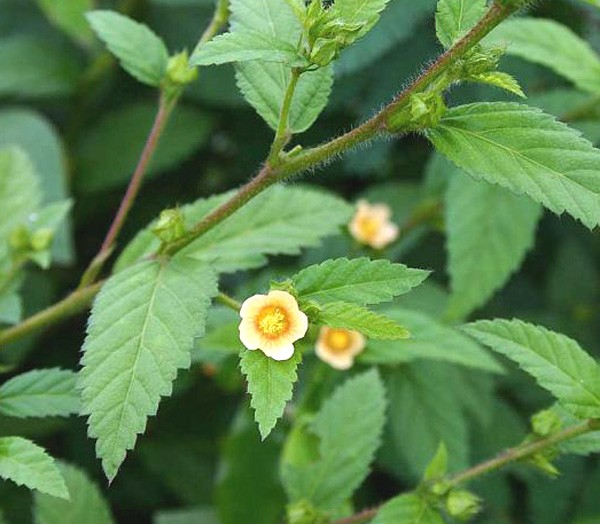 สมุนไพร หญ้าขัด ชื่อสามัญ Paddy’s lucerne, Queensland hemp, Arrowleaf Sida, Common Sida, Cuba Juite