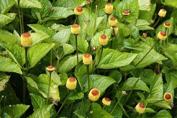 สมุนไพร ผักคราดหัวแหวน ชื่อสามัญ Para cress, Tooth-ache Plant, Toothache plant, Brazil cress Toothache plant, Pellitary, Spot flower