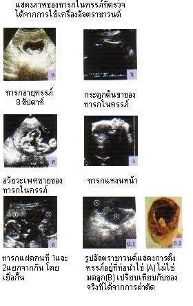 ทารกในครรภ์เจริญเจริญเติบโตดีหรือไม่ ใน รายที่สงสัยว่า ทารกในครรภ์ จะมีการเจริญเติบโต ไม่เป็นไปตามเกณฑ์ปกติ การใช้เครื่องอัลตราซาวนด์ เพื่อวัดขนาดของทารก เป็นระยะ จะช่วย ในการวินิจฉัยภาวะนี้ได้แน่นอนขึ้นทารกในครรภ์พิการหรือไม่ อัลตราซาวนด์ สามารถตรวจพบ ความผิดปกติ หรือความพิการ ของทารกในครรภ์ได้มากมาย เช่น