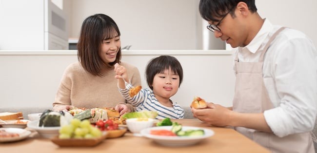 เชื่อมั้ยคะว่า การกินข้าวพร้อมหน้ากันของคนในครอบครัว สามารถช่วยให้ทุกคนในบ้านได้รับสารอาหารที่ครบถ้วนมากขึ้น โดยเฉพาะลูกน้อยจองคุณ เพราะอะไรน่ะเหรอคะ นั่นเป็นเพราะว่าการที่เด็กได้เห็นว่าพ่อแม่หรือผู้ใหญ่ในบ้านกินผักผลไม้กันอย่างเอร็ดอร่อย ทำให้เด็กอยากลอง อยากกินเหมือนพ่อแม่