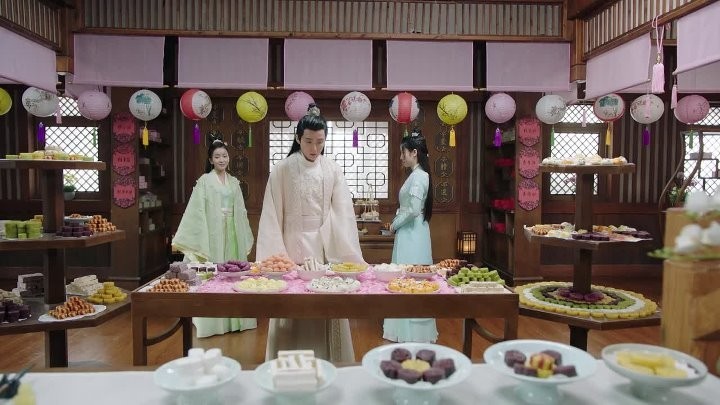 นั่นทำให้นางได้พบกับโจวจวินเจวี๋ยซึ่งกำลังไล่ล่าใครบางคนจนทำให้ขนมนางเสียหาย เมื่อเขาชดใช้เงินค่าขนมให้นางแบบใจปล้ำ นางก็รู้ว่าผู้ใช้คนนี้น่าจะเหมาะเป็นลูกค้าของนาง เมื่อทั้งคู่พบกันอีกครั้งที่หอฮวาอวี่ และนางได้ช่วยชีวิตเขาไว้ ครั้งนี้โจวจวินเจวี๋ยรู้สึกชอบนางเข้าอย่างจัง