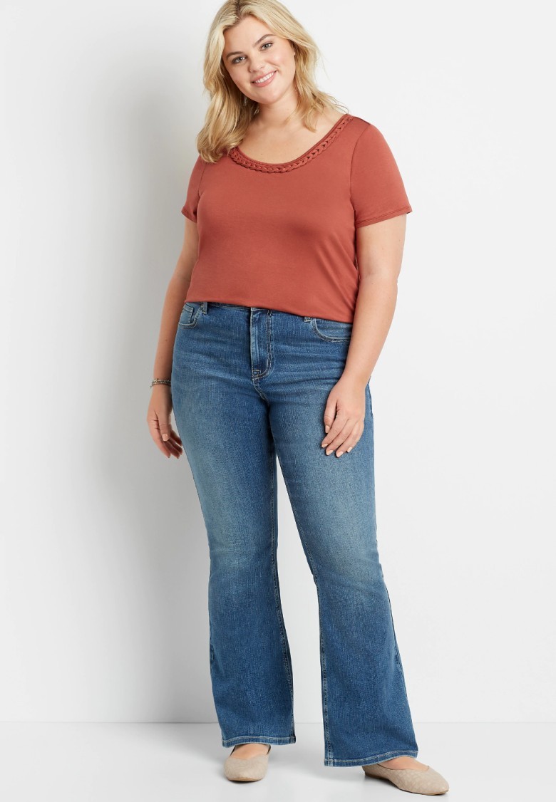สาวร่างสมบูรณ์ จัดว่าอ้วน เมื่ออยากใส่กางเกงยีนส์ ควรเลือกกางเกงเอวต่ำ แต่อย่าต่ำมากเกินไป เพราะเดี๋ยวจะให้ผลตรงข้ามค่ะ เพราะกางเกงเอวต่ำจะช่วยลดขนาดของสะโพกลงได้ ส่วนกางเกงขากระดิ่งจะช่วยให้ดูเพรียวขึ้น และพยายามเลี่ยงผ้าลูกฟูกที่มีเนื้อหนักและหนา เพราะมันจะขยายขนาดของคุณ ส่วนสีก็ควรเลือกกางเกงที่มีสีเข้มเพราะจะช่วยลดขนาดได้ค่ะ