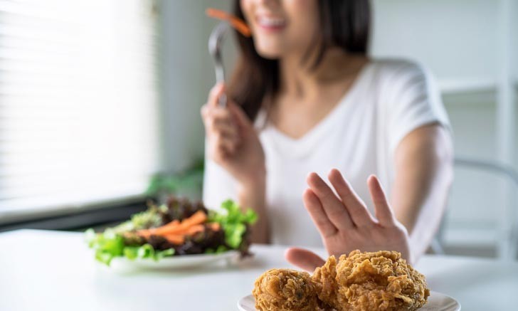 1. เลือกกิน เน้นอาหารมากคุณค่าแคลอรีไม่สูงปรี๊ด เลือกกินอาหารให้ครบ 5 หมู่ เน้นเพิ่มปริมาณผัก ผลไม้อาหารมากไฟเบอร์ ที่ช่วยให้ระบบย่อยและระบบขับถ่ายทำงานได้ดี เลือกโปรตีนจากปลา ถั่ว ที่แคลอรีต่ำ ลดอาหารกลุ่มแป้งและไขมัน