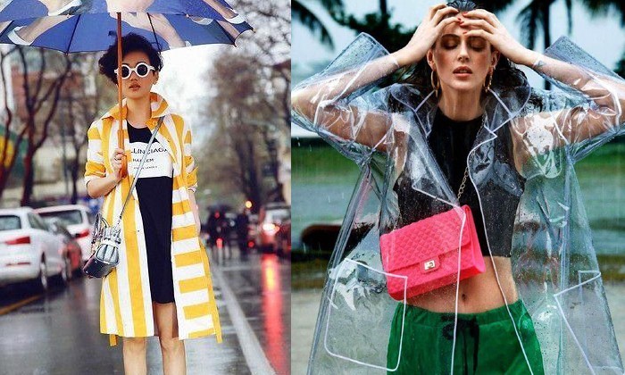 สีเสื้อผ้า อากาศจะมืดจะครึ้มแค่ไหนก็ต้องปล่อยไปค่ะสาวๆ อย่างเราต้องแซบสดใสไว้ก่อน จะชมพู ฟ้า แดง เหลือง ก็จัดมาเต็มไปเลย ส่วนเรื่องของเนื้อผ้าก็ไม่ควรใส่ที่มันบางเกินไปนะคะ เพราะเวลาเปียกฝนจะทำให้เสื้อผ้าแนบเนื้อดูเซ็กซี่เกินไป หรือจะใส่เสื้อซับไว้ข้างในด้วยก็ได้ค่ะ